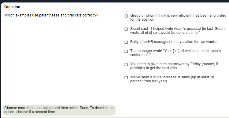 Solved Question Which Examples Use Parentheses And Brackets Chegg Com